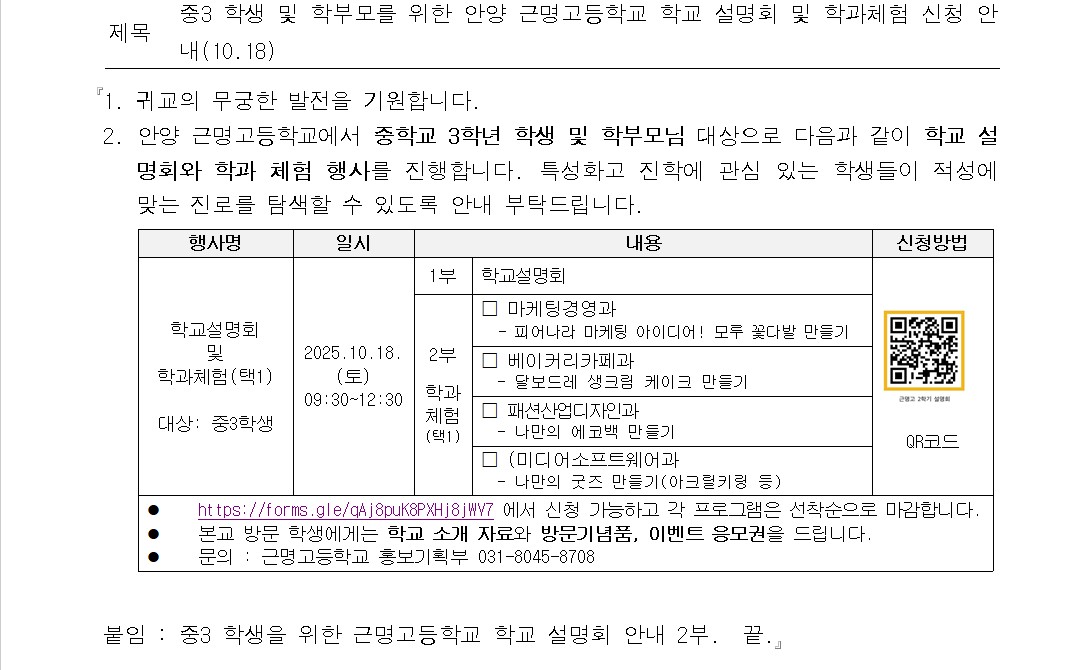 [ÀϹÝ] 2026Çг⵵ ¾È¾ç ±Ù¸í°íµîÇб³ Çб³ ¼³¸íȸ ¾È³»ÀÇ Ã·ºÎÀ̹ÌÁö 1