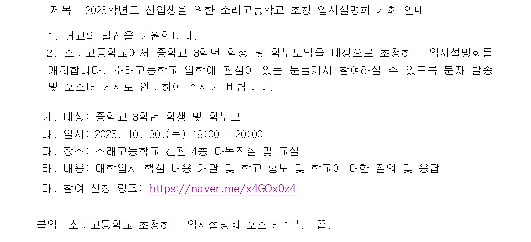 [ÀϹÝ] 2026Çг⵵ ½ÅÀÔ»ýÀ» À§ÇÑ ¼Ò·¡°íµîÇб³ ÀԽü³¸íȸ ¾È³»ÀÇ Ã·ºÎÀ̹ÌÁö 1