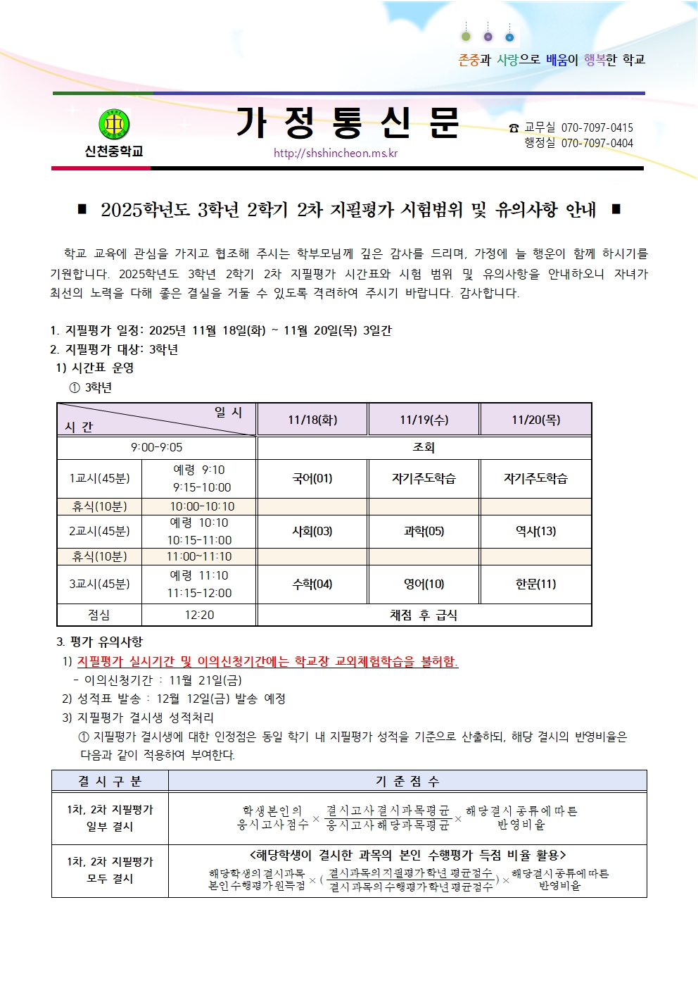 [ÀϹÝ] 2025Çг⵵ 3Çгâ 2Çбâ 2Â÷ ÁöÇÊÆò°¡ ½ÃÇè¹üÀ§ ¹× À¯ÀÇ»çÇ× ¾È³»