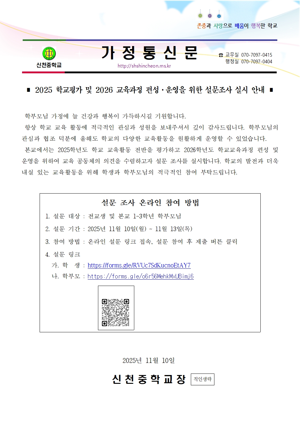 [ÀϹÝ] 2025 Çб³Æò°¡ ¹× 2026 ±³À°°úÁ¤ Æí¼º¡¤¿î¿µÀ» À§ÇÑ ¼³¹®Á¶»ç ½Ç½Ã ¾È³»