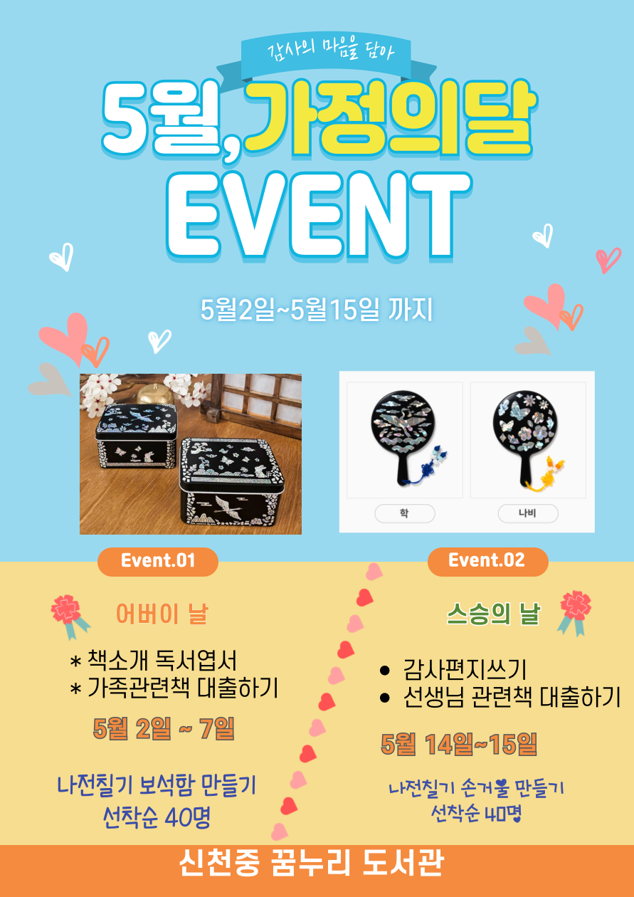 5¿ù °¡Á¤ÀÇ ´ÞÀ» ¸ÂÀÌ ÇÏ¿© ¼Ò¼ÒÇÑ Çà»ç¸¦ ÇÕ´Ï´Ù.