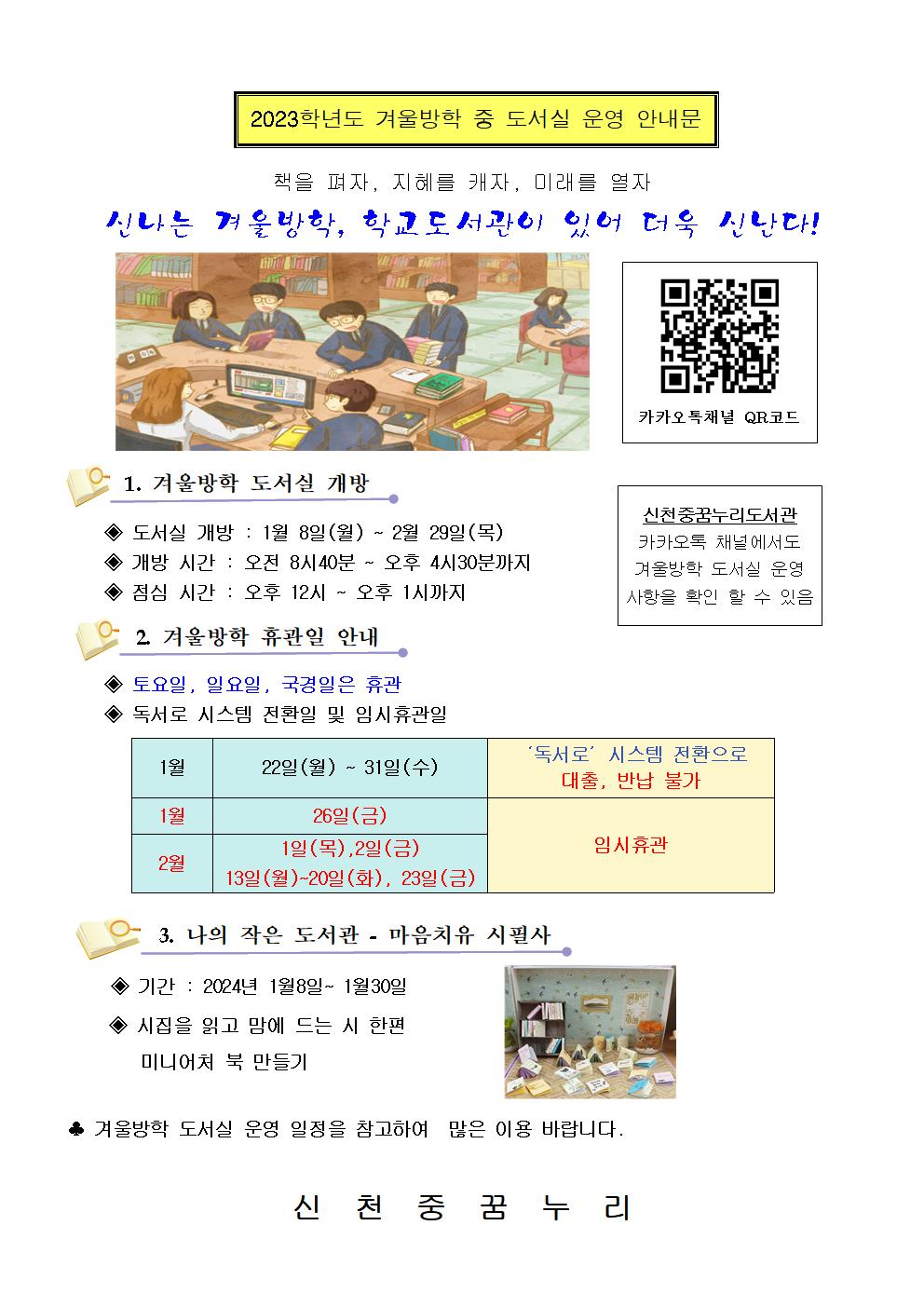 [ÀϹÝ] 2023³â °Ü¿ï¹æÇÐ µµ¼­½Ç ¿î¿µ ¾È³»ÀÇ Ã·ºÎÀ̹ÌÁö 1